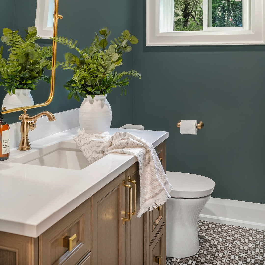 After retiring and relocating from Calgary, this couple found the perfect Burlington lot to build their dream home. Cresmark designed and constructed a new two-storey residence that blends timeless character with modern elegance. The open-concept kitchen with rich wood cabinetry and quartz counters anchors the home, while the living room’s stone fireplace creates a warm focal point. Spa-inspired bathrooms and a stylish powder room complete a design that balances comfort, function, and refined style.