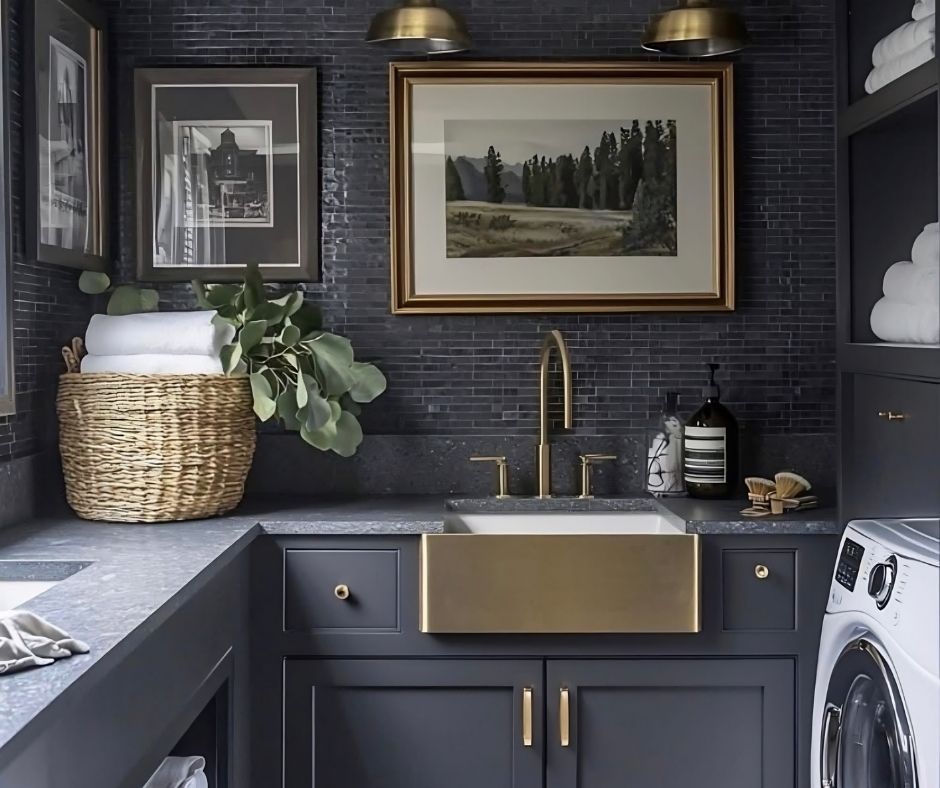 Custom Cabinetry, Marble-Inspired Surfaces & Brass Accents