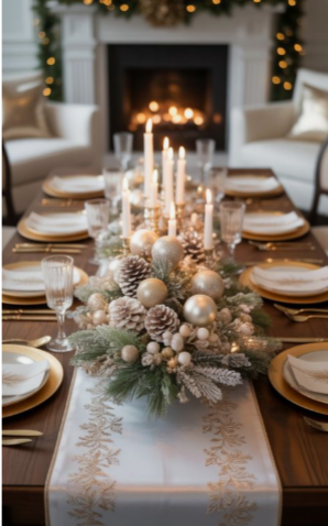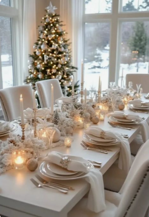 The dining table is where holiday memories are made—filled with laughter, conversation, and the simple joy of gathering together. For 2025, table settings are all about layered texture, natural materials, and thoughtful detail. Start with a neutral foundation—linen runners or soft woven placemats—and build upward with elegant dinnerware, mixed metals, and organic touches like greenery or sprigs of rosemary at each place setting. Combine candlelight with delicate string lights or small glass votives for a warm, ambient glow that flatters both food and conversation. Incorporate seasonal accents—such as miniature ornaments, ribbon-tied napkins, or personalized place cards—to add charm and individuality without overwhelming the table. For a modern twist, balance classic holiday hues with muted tones—think forest green with blush, or deep burgundy with soft ivory. The key is elegance through simplicity: create a setting that feels intentional, inviting, and ready to welcome those you love most.