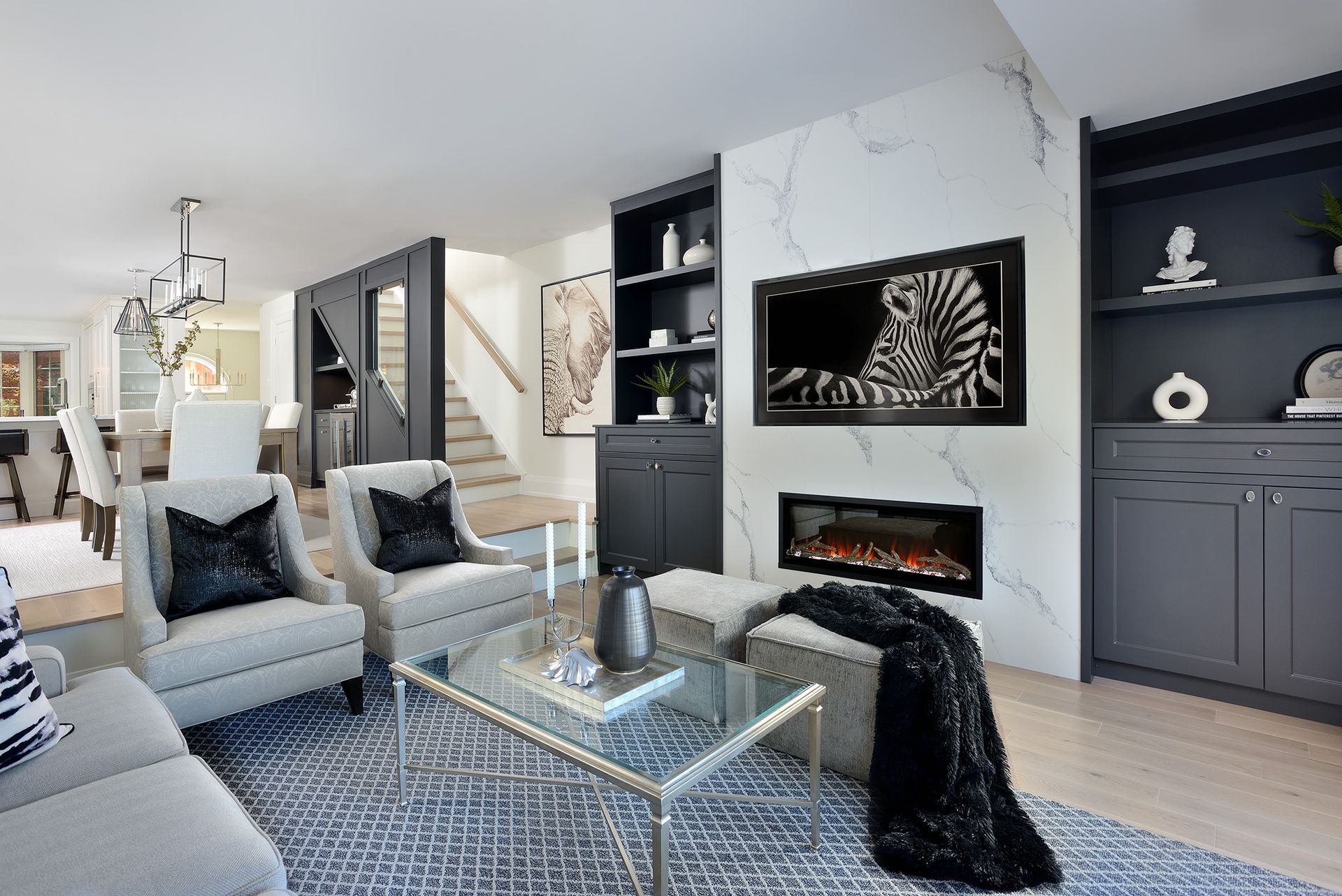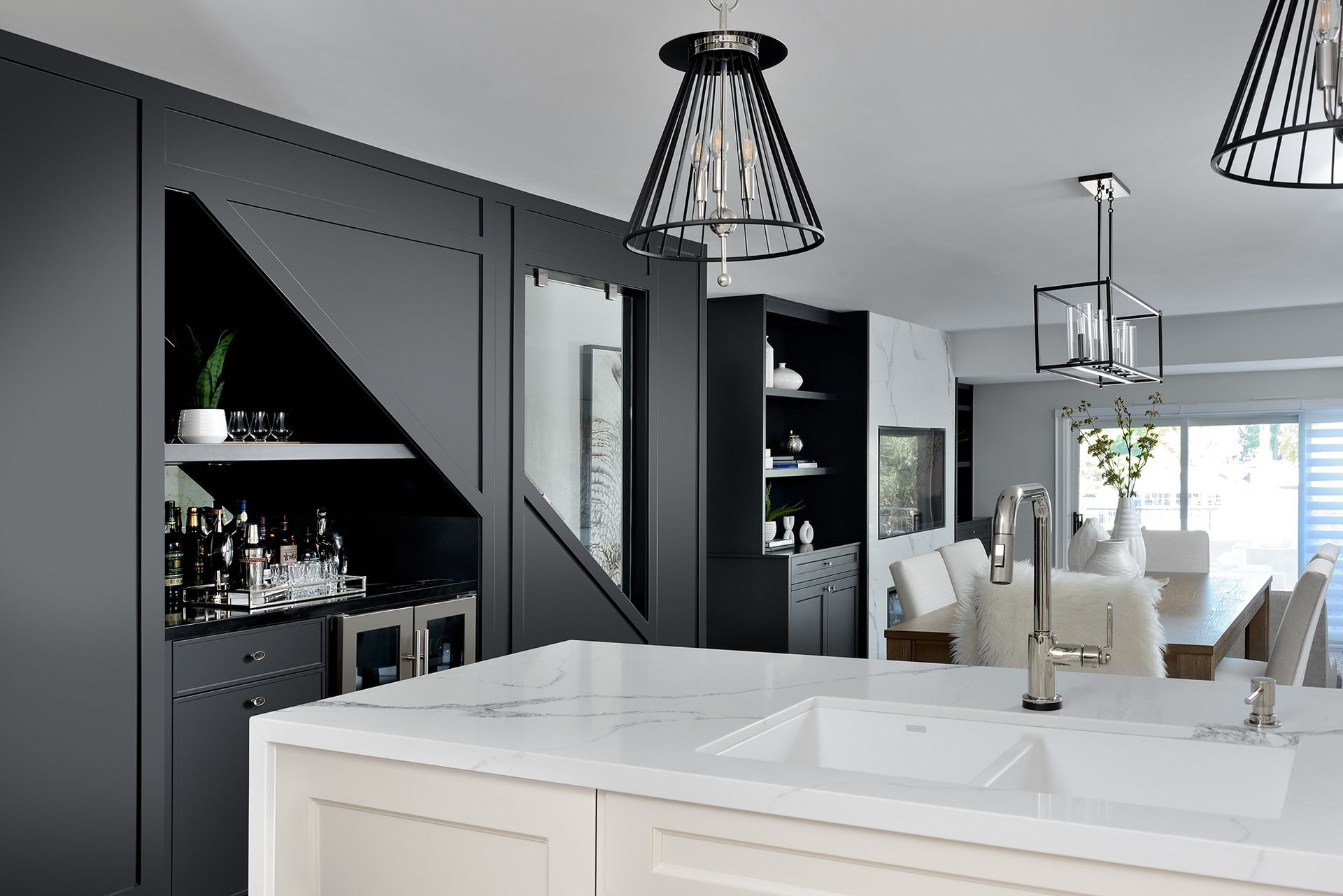 A custom bar, designed to showcase their whiskey collection, serves as a striking and personal focal point—blending elegance with everyday ease. The result is a beautifully tailored home that reflects their next chapter with comfort and style.