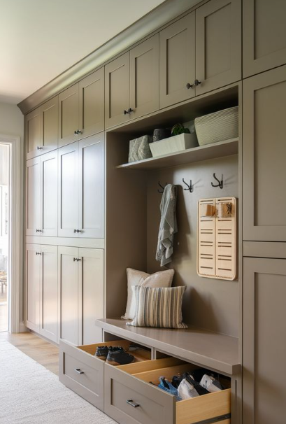 In family homes, clutter tends to collect at entry points. Without a designated drop zone, shoes pile up, coats migrate to chairs, and keys go missing. A thoughtfully planned mudroom creates a clear transition between outdoors and indoors—containing the mess while keeping the rest of the home calm and organized. When designed properly, it becomes one of the most valuable spaces in the house.