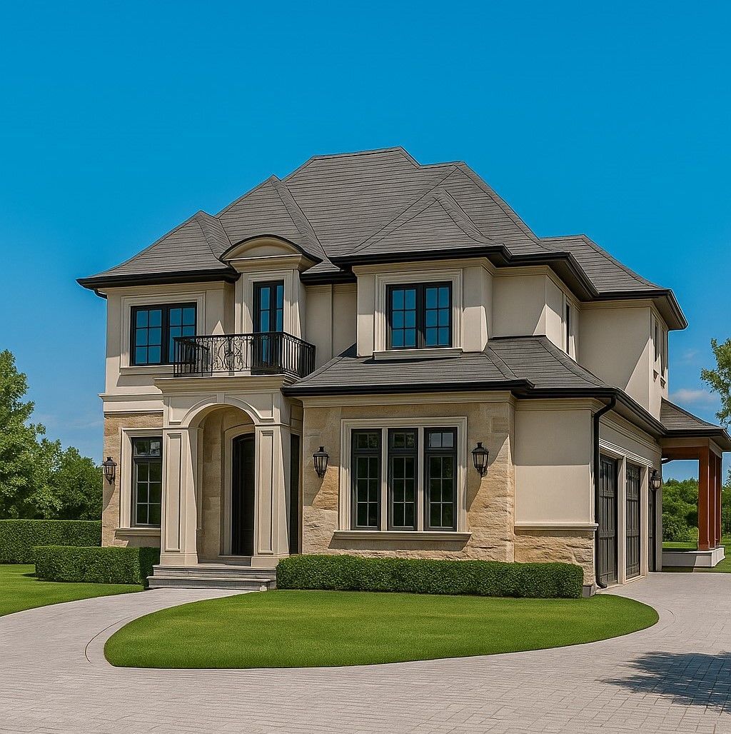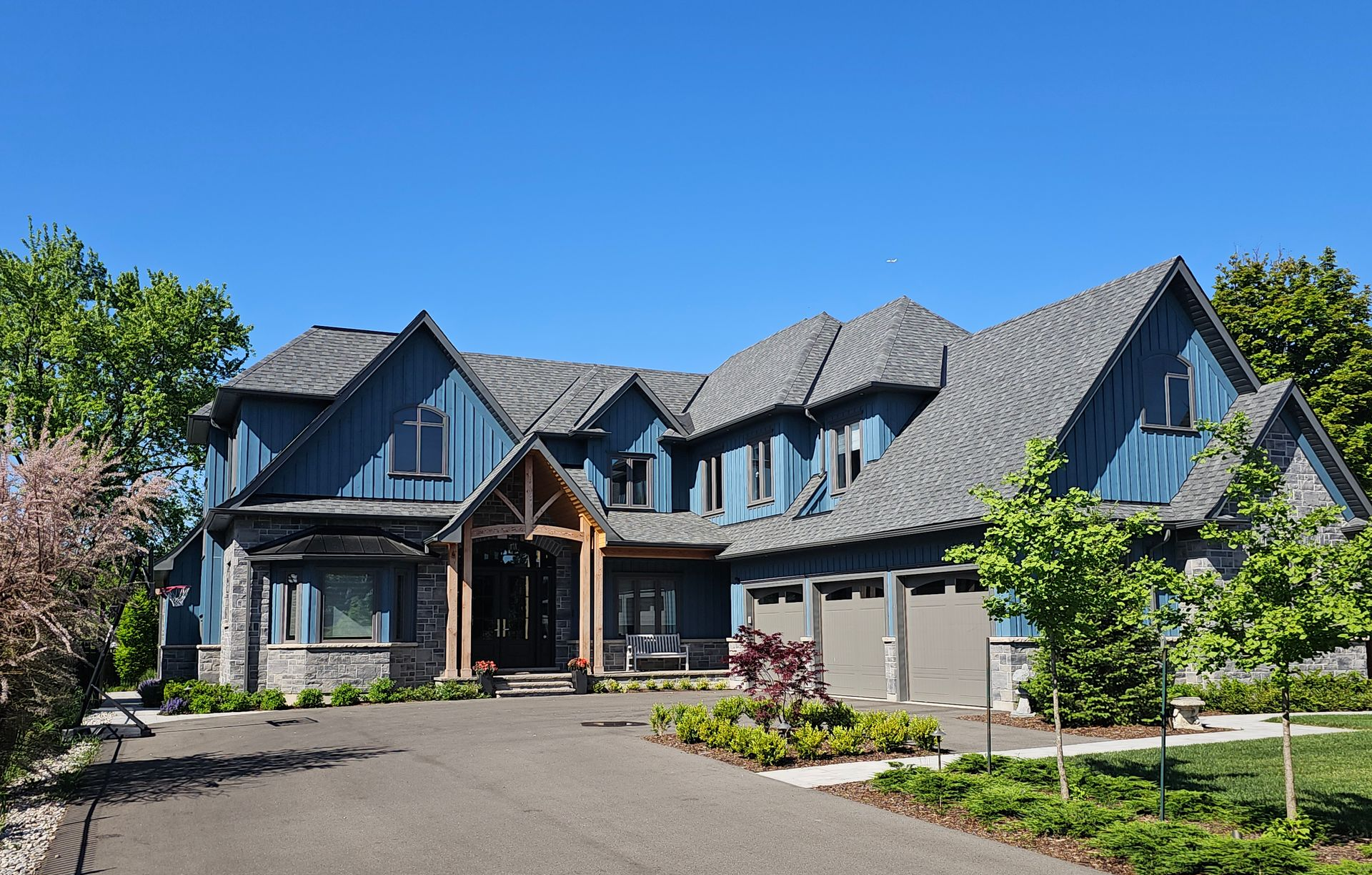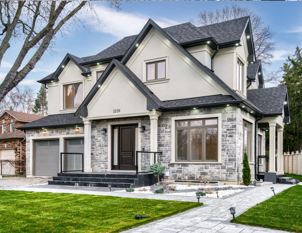 In Oakville, this striking custom residence was designed to balance modern style with timeless character. With its bold peaked rooflines, stone façade, and expansive windows, the home makes a statement of sophistication. Inside, thoughtful details and refined finishes create a welcoming environment perfectly suited for family living and entertaining.
