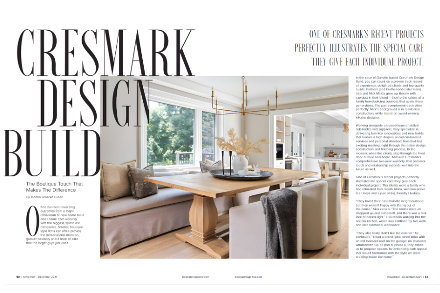 At Cresmark Design Build, our work has been showcased in leading design and lifestyle publications, each feature offering a deeper look into the creativity, craftsmanship, and collaboration behind our projects. These editorials highlight the real families, thoughtful design decisions, and intentional details that shape every home we create—giving readers an inside perspective on the spaces, stories, and transformations that define our work.