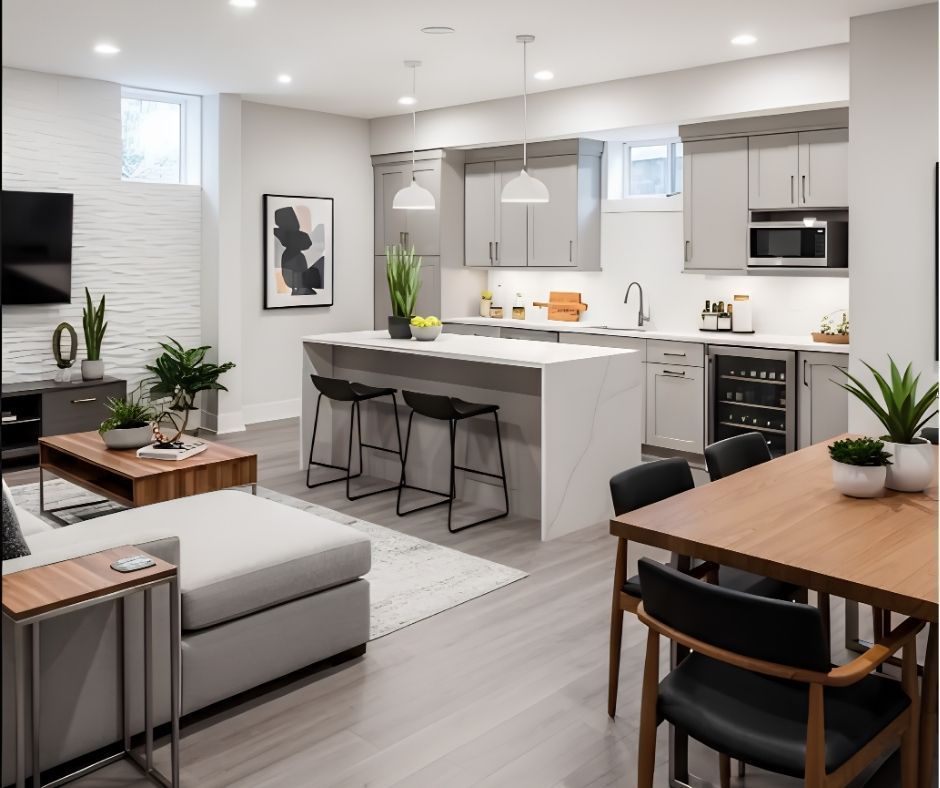 A private bedroom, bathroom, and kitchenette can transform your basement into a flexible living space.